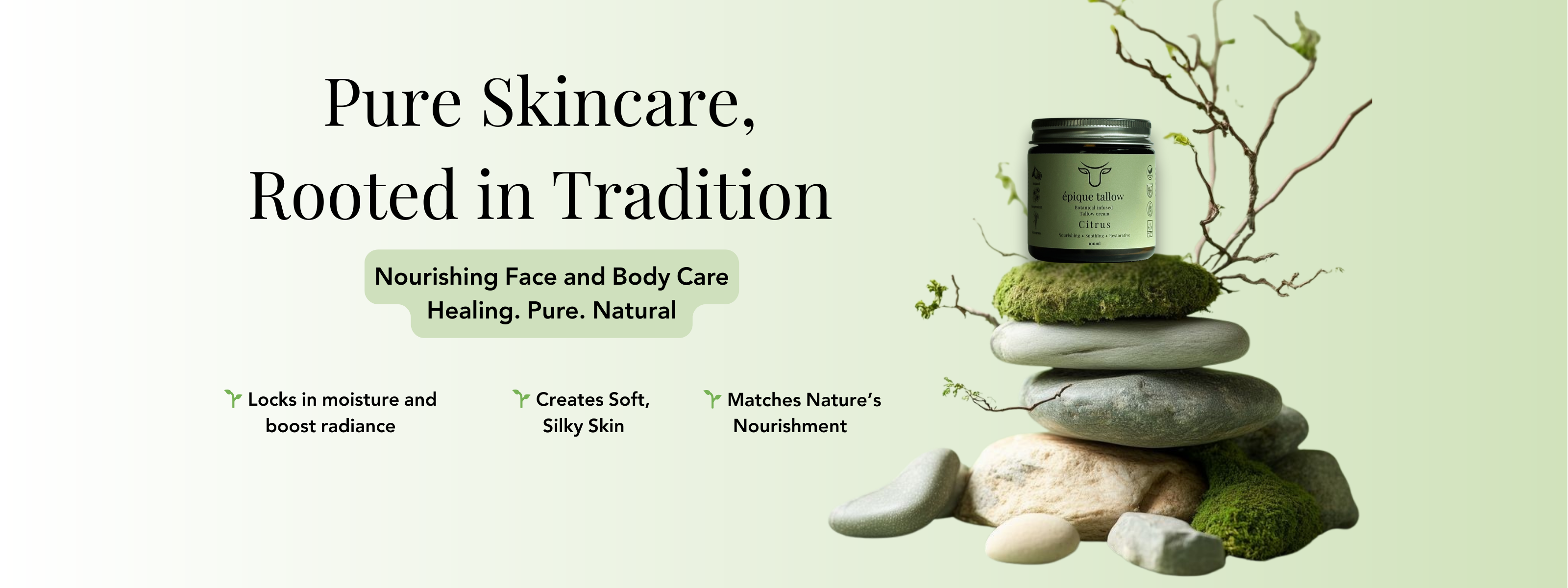 Crafted with nutrient-rich grass-fed tallow and infused with calming botanicals, our skincare is a return to the roots – simple, effective, and incredibly nourishing.